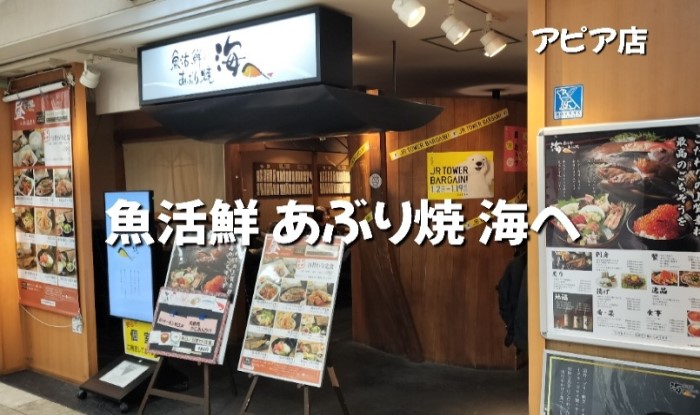 まず札幌駅南口広場B1F のアピア内にある【魚活鮮あぶり焼 海へ】アピア店で食事をして…